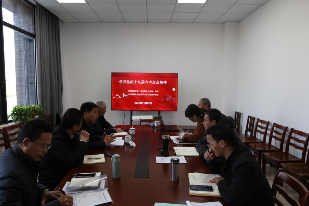 朱素斌强调指出学习领会习近平总书记在党的十九届六中全会上的重要讲话精神,认真研读党的十九届六中全会文件,深刻理解党的十九届六中全会提出的一系列重大理论观点、重大工作部署是我们当前及今后一个时期最重要的政治任务。同时提出党委要加强组织领导,周密安排,并对理论学习中心组成员、党员干部、师生党员和全体教职工如何深入学习六中全会精神提出了建议和要求,从而真正把六中全会精神转化为工作动力,从六中全会精神中汲取精神力量,高标准全面冲刺决战收官,确保学院、部门全年工作任务顺利完成,为创大、建设一流应用型综合性大学作出应有的贡献。