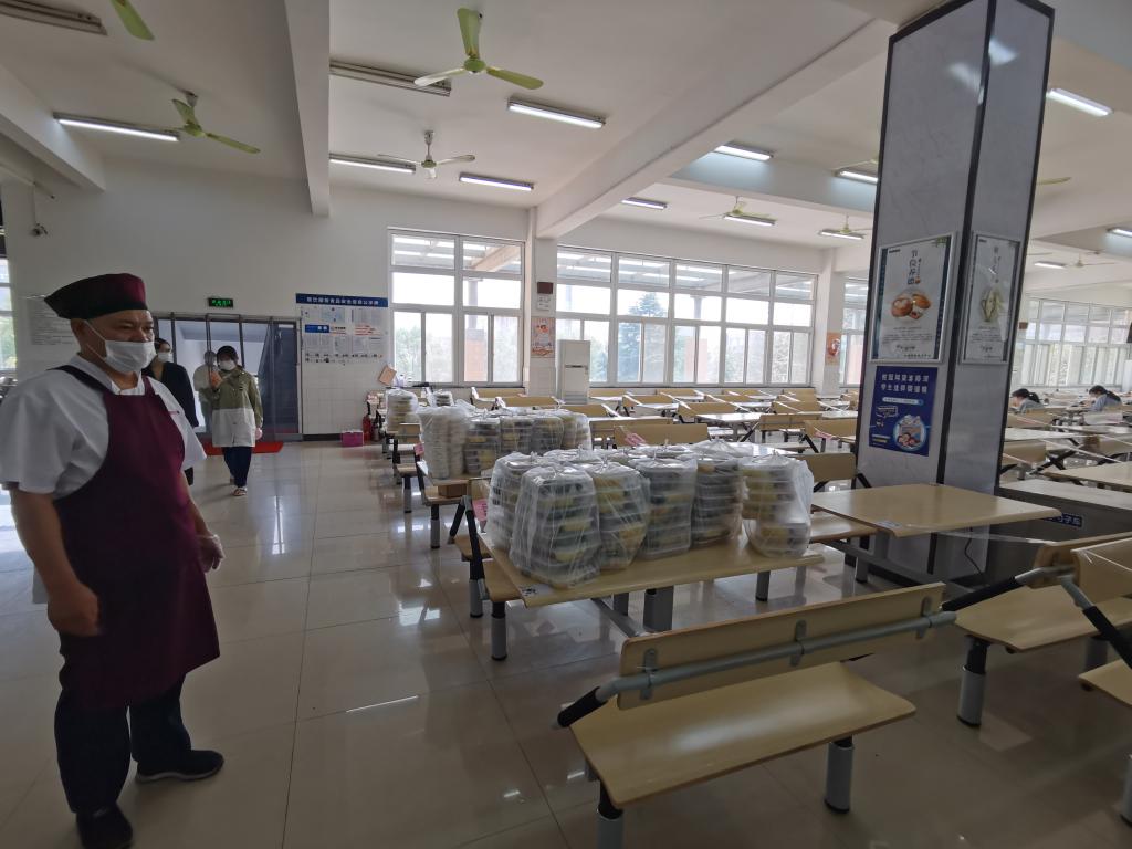 平湖校区食堂在工作人员减少的情况下,每天为校区师生准备饭菜,为健康观察的学生打包饭菜,他们不仅要保证数量质量,还要兼顾营养搭配。食堂工作人员做饭、打包、封盒、装袋、配送,这样的动作流程每天重复无数次,但他们毫无怨言,依然忙碌着,坚守着,只为能让学生按时吃上热乎乎的饭菜。宿舍管理人员也坚守岗位,做好寝室卫生和安全检查,配合做好学生寝室搬迁和信息上报,还时不时温馨提醒同学们做好寝室通风和消杀工作。