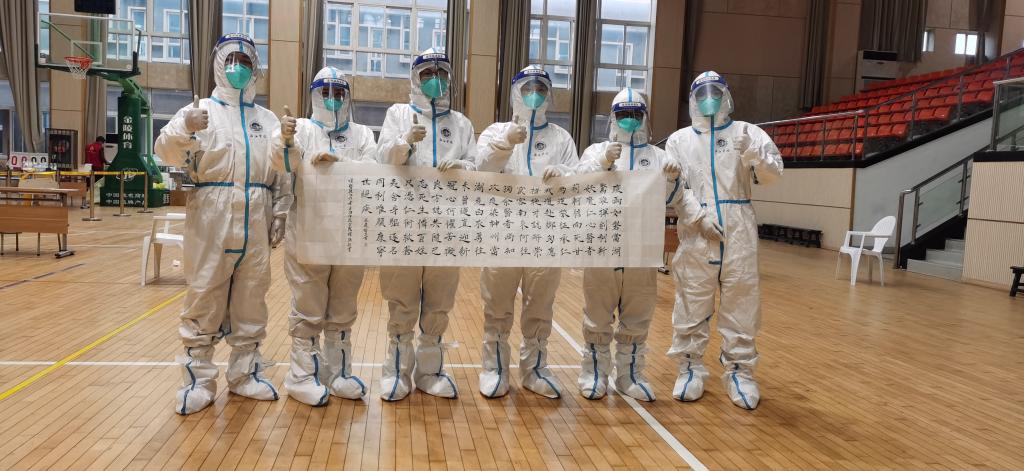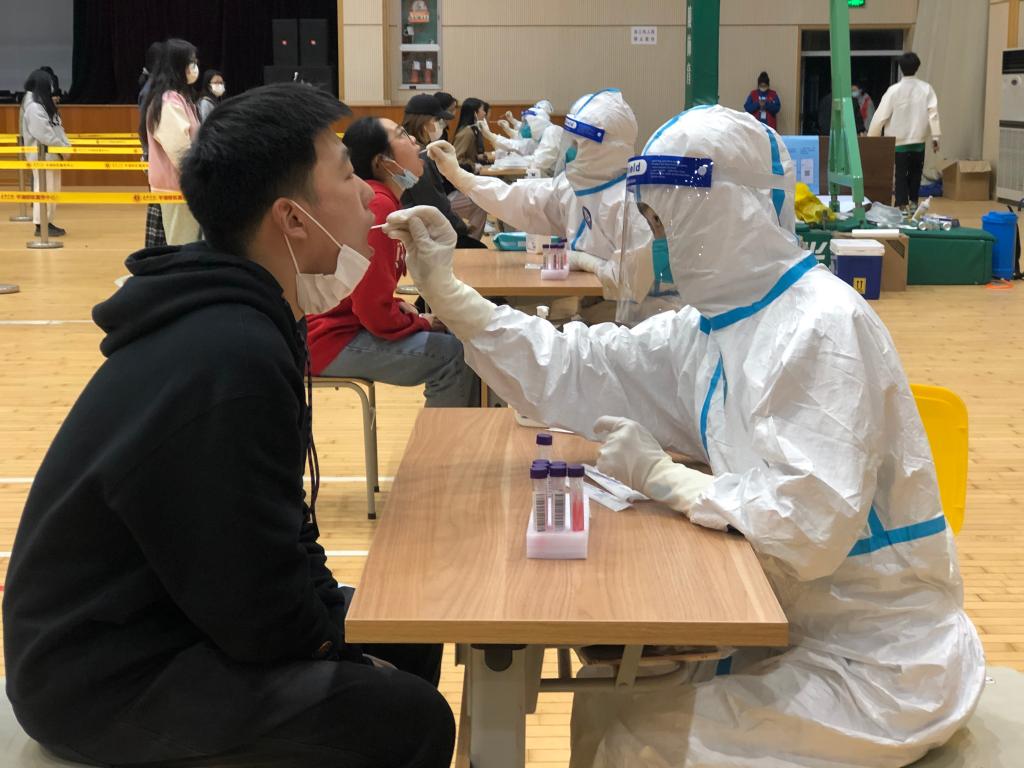 一身洁白的防护服,一副已经被雾气模糊的护目镜,一个深深勒紧面部的口罩,一双炯炯有神的眼睛,这是他们的标配。无论是早上4点半,还是战斗到夜里12点,他们最先到达,最后离开,准备物资、录入信息、维护秩序、全副武装,烈日下,暴雨中,校医院医护人员配合平湖校区所在街道医护人员为1580余名在校师生做核酸检测。目前,平湖校区已完成五轮校内全员核酸,共检测师生员工7900余人次,结果均为阴性。