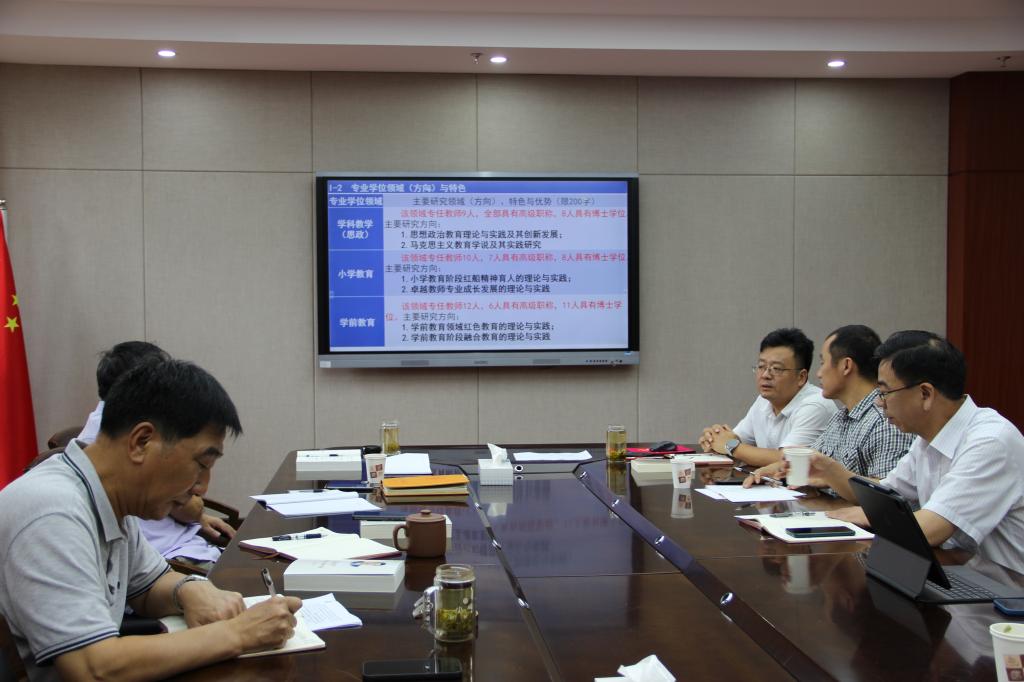 副院长王明建作“坚定不移走高质量发展之路,全力以赴做好教育硕士学位申报工作”的主题发言,从培育规划、短板补齐两个方面对学院教育硕士申报工作进行了深入阐述。