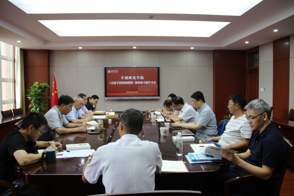 8月30日,学院理论学习中心组举行《习近平谈治国理政》第四卷专题学习会。学院党委书记朱素斌主持并作中心发言,党委理论学习中心组成员、党支部书记、教育硕士学位申报工作专班成员参加学习会。