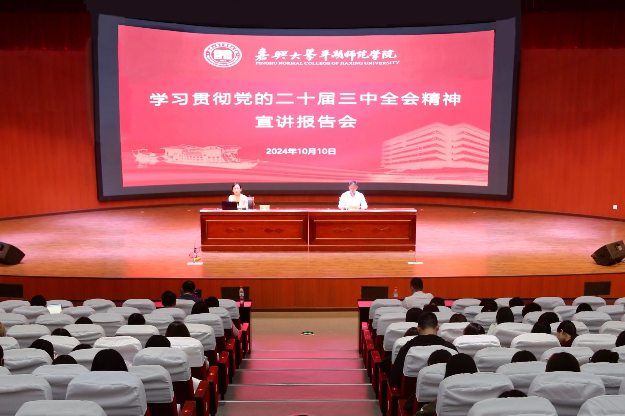 10月10日tyc7111cc太阳成集团在平湖校区报告厅召开党的二十届三中全会精神宣讲报告会。校党委委员、副校长(主持日常工作)张琦主讲,学院党委书记冯伟芳主持。
