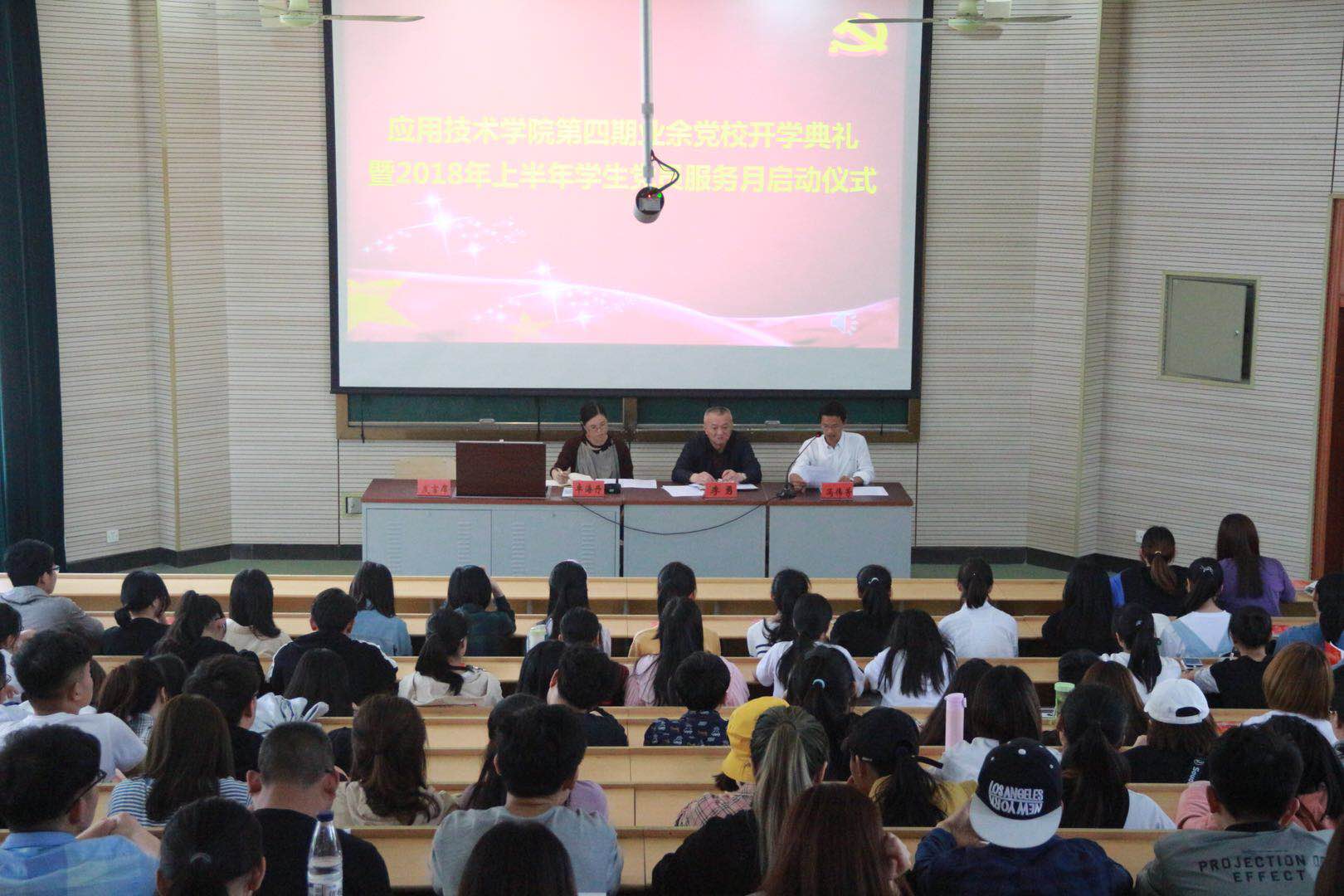 2018年5月4日中午,学院第四期业余党校开学典礼暨2018上半年学生党员服务月启动仪式在阶梯教室一顺利举行,学院党总支书记、院长李勇,党总支副书记冯伟芳出席典礼,59名第四期党校学员、51名入党积极分子、13名学生党员参加,学工办主任兼团总支书记卓海丹主持。