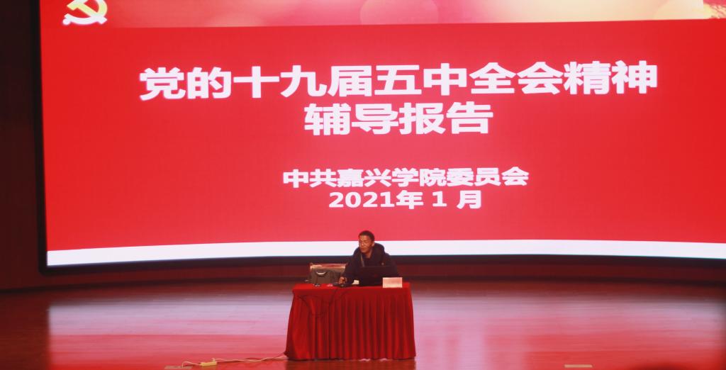 2021年1月7日,党的十九届五中全会精神宣讲会在行政楼报告厅举行,学院党总支副书记冯伟芳主讲,学工办辅导员和280多位学生到场聆听。