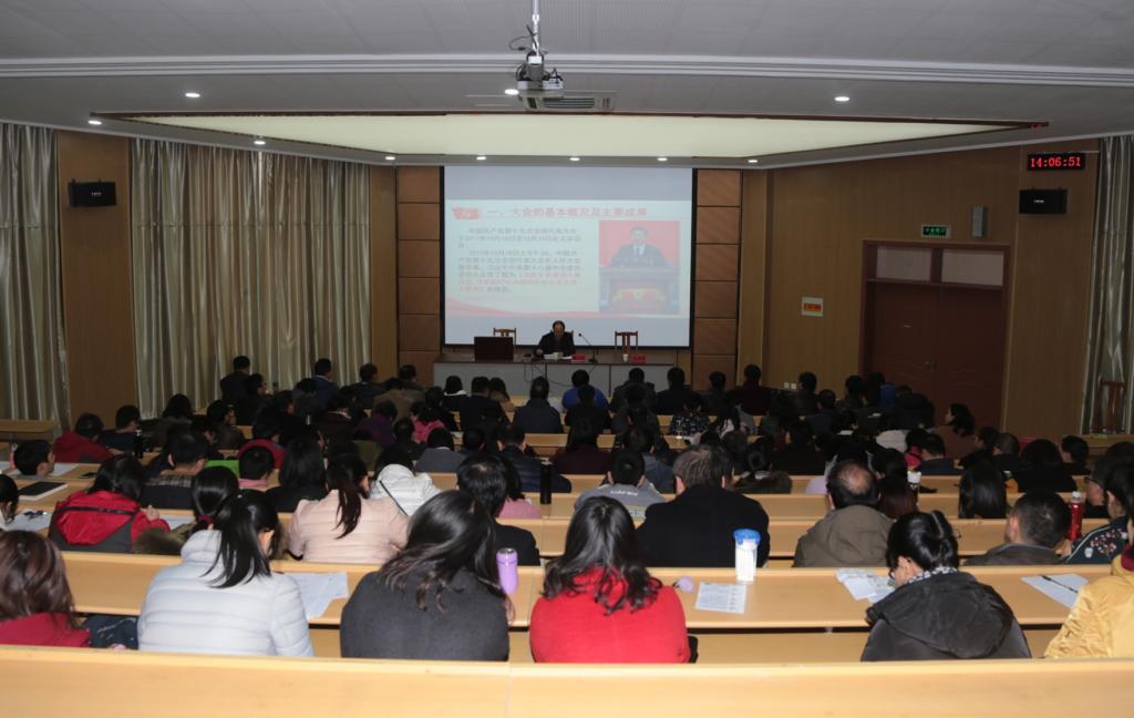 黄文秀书记在宣讲中首先介绍了大会的基本概况及主要成果,指出党的十九大是党和国家事业发展进程中具有划时代意义的里程碑。其次,黄书记围绕深刻认识新成就、深刻认识新方位、深刻认识新理论、深刻认识新征程、深刻认识新部署、深刻认识新要求等“六个新”对党的十九大报告精神作了全面系统地解读。最后,黄书记结合学校的教学实际,强调将学习贯彻党的十九大精神与学校教育具体相结合。