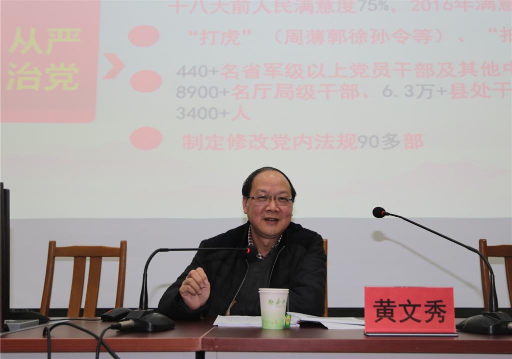 12月7日下午,校党委书记黄文秀到平湖校区宣讲党的十九大精神,应用技术学院全体教职工参加,参加宣讲报告会议的还有平湖校区服务中心、师范学院。平湖校区管委会常务副主任、服务中心主任朱素斌主持宣讲会。