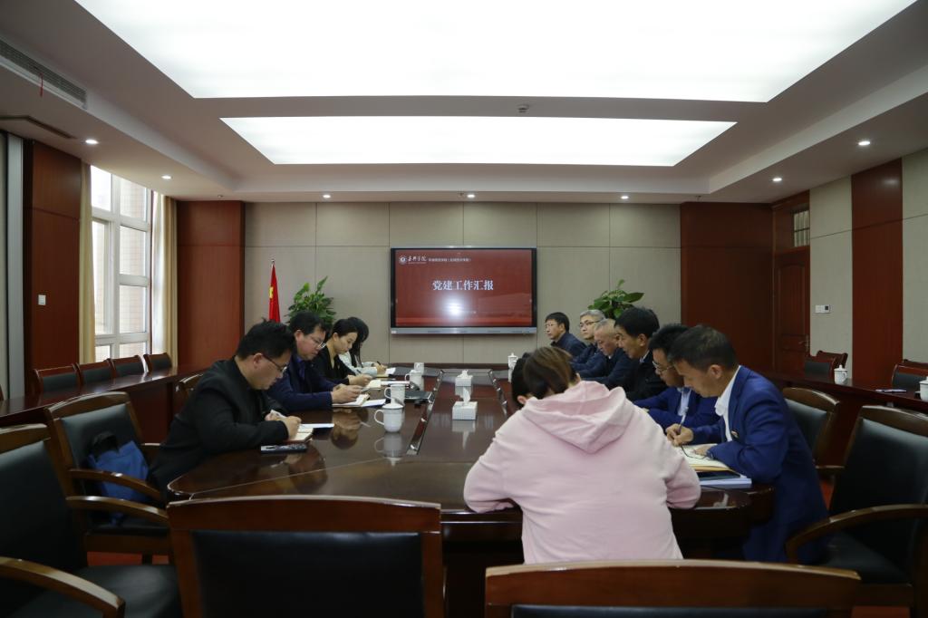 学院党委书记朱素斌作学院党建工作汇报。他介绍了学院基本情况,从思想政治引领、基层党组织建设、课程育人、文化育人、实践育人、服务育人、党风廉政和师德师风建设、校地对接等方面详细汇报了学院党建工作以及存在的不足和工作中遇到的困难。他表示今后学院将坚持以习近平新时代中国特色社会主义思想为指引,深入学习贯彻党的二十大精神,强化党建引领,加强党建与思想政治工作,坚持党建工作与推动学院发展同谋划、同推进,团结师生员工,勇于担当作为,务实奋发进取,努力开创学院党建和各项事业发展新局面。