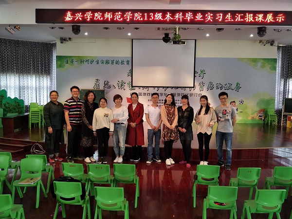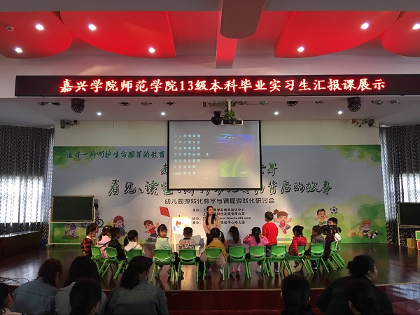 4月27日上午,学前教育专业13级毕业生毕业汇报课活动在平湖市开发区幼儿园报告厅顺利举行。开发区幼儿园副院长姚春花,教研组长顾美群、吴任、崔燕、陈菊芳,学前教育系主任顾群,副主任周佳,姬生凯老师,13级毕业生,15大毕业生到场观摩、学习。