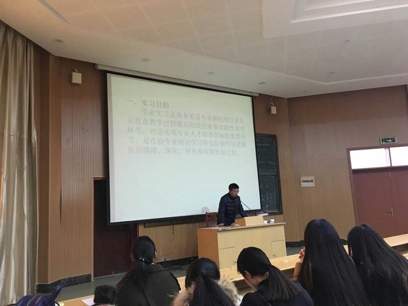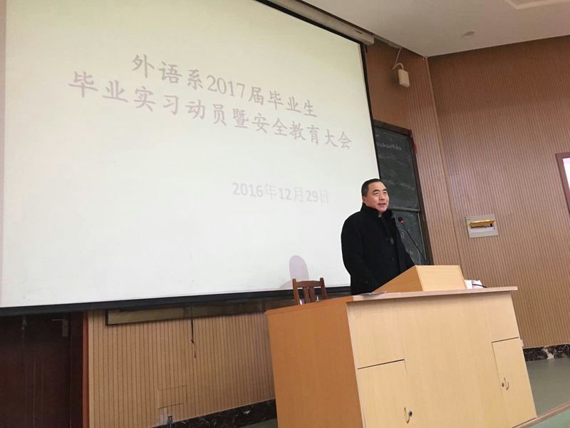12月29日中午,外语系2017届毕业生实习动员暨安全教育大会在阶梯教室二顺利召开。外语系2017届全体毕业生参加了此次会议。