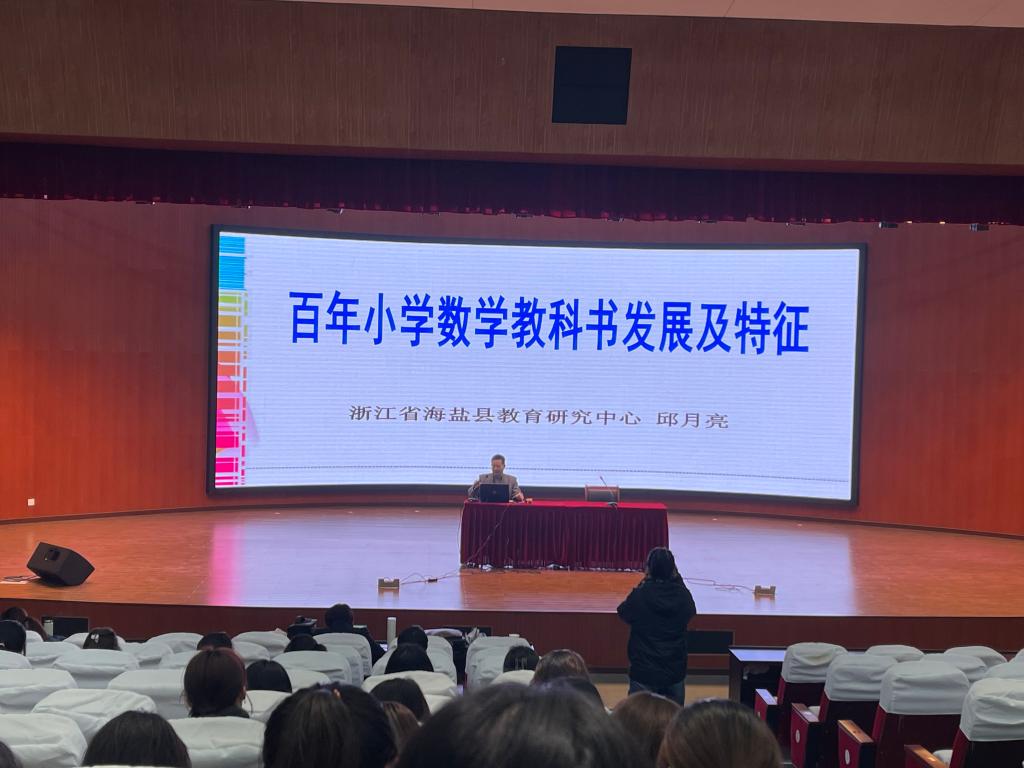 4月6日下午,嘉兴海盐县教育研究中心研训员、浙江省特级教师、正高级教师、嘉兴市小学数学教学研究会副会长邱月亮应邀为学院师生作“百年小学数学教科书的发展及特征”讲座,学院副院长朱小烽主持,学院教师、小学教育系学生等聆听了本次讲座。