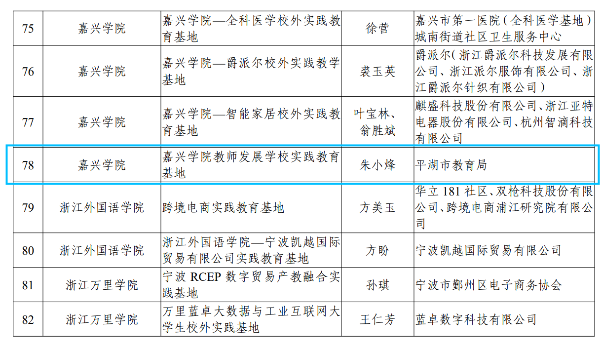 近日,浙江省教育厅办公室关于公布普通本科高校“十四五”省级重点建设实验教学示范中心和省级大学生校外实践教育基地立项建设名单的通知,我校此次共立项7项,学院的“嘉兴学院教师发展学校实践教育基地” 获浙江省“十四五”省级大学生校外实践教育基地立项。