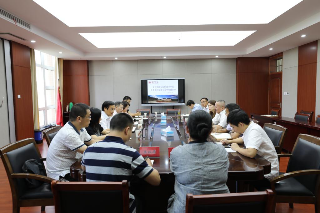 9月27日上午,设计学院鲁恒心院长、张杰书记一行到我院开展主题为“设计学院与应用技术学院专业协同发展与办学资源共享”的调研活动。两院领导班子成员及各专业负责人在行政楼308会议室召开交流会。