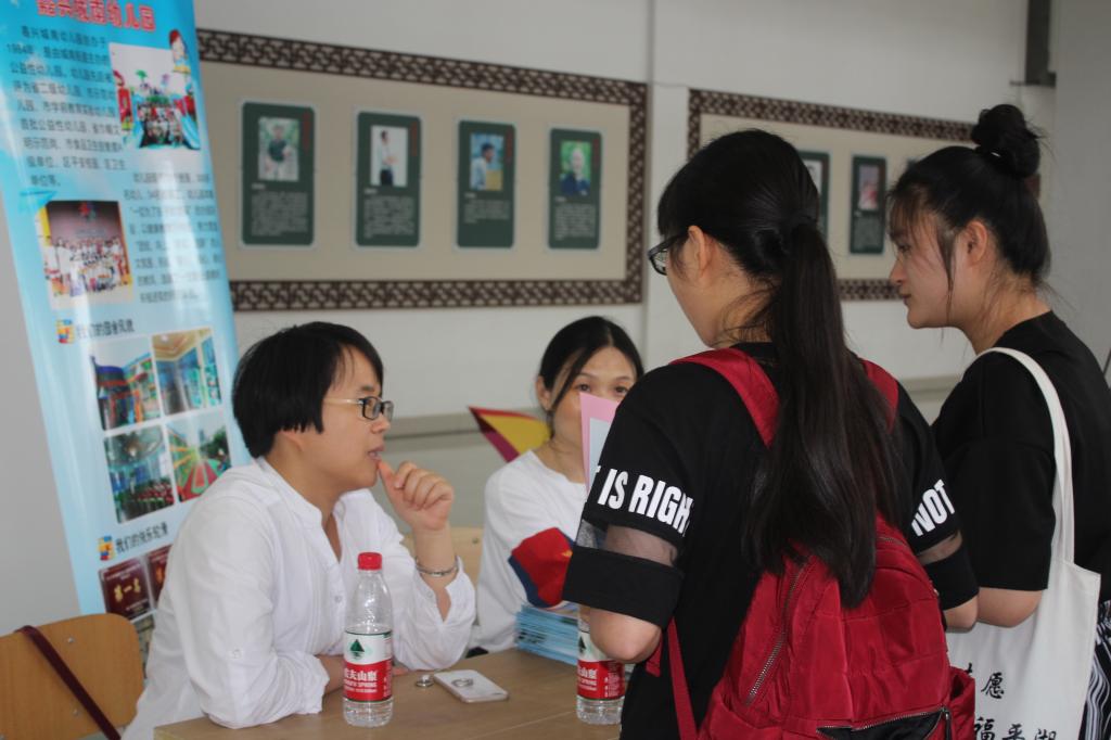 6月13日下午,学院组织了学前教育专业校园专场招聘会。为进一步推动2017届学前教育专业毕业生充分就业,在嘉兴市教育局帮助下,组织了嘉兴市辖区25所幼儿园进校园举行专场招聘会。此次招聘会主要面向2017届学前教育毕业生,同时2018届学前教育专业的同学也来到招聘会现场,了解当前的就业形势、用人单位需求等。