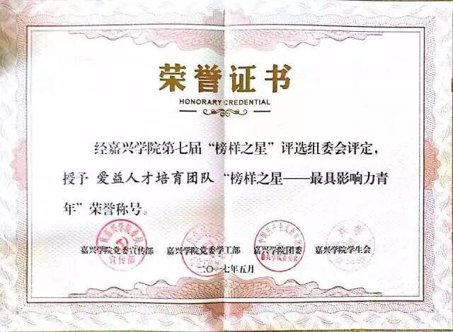 5月4日下午,学校纪念建团95周年暨第七届“榜样之星——最具影响力青年”评选活动颁奖典礼在梁林小剧场隆重举行。学院爱益人才培育团队获得第七届“榜样之星—最具影响力青年”荣誉称号。