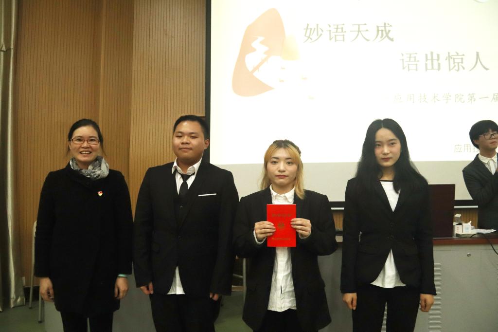 12月6日晚,应用技术学院首届成语大赛于阶梯教室二正式开展。学院党总支副书记冯伟芳老师、学工办主任卓海丹老师担任评委。本次比赛共有60余人参赛,最后三支队伍的9名选手挺进决赛。