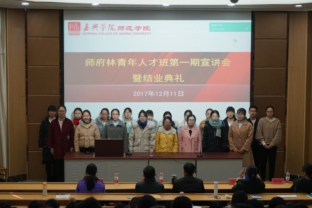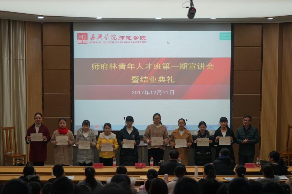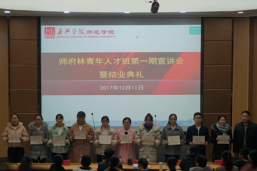 江建老师宣读了师范学院师府林青年人才班第一期结业学员名单,同时与丁院长一起给结业学员颁发了结业证书。