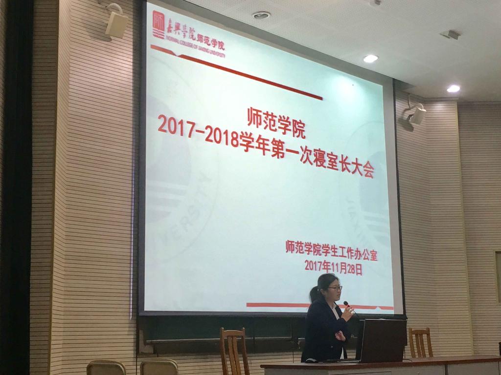 11月28日傍晚,为进一步做好学生寝室的教育管理工作,营造温馨、健康、文明的寝室文化氛围,学院在阶梯教室一组织召开了全体寝室长大会。学院党总支副书记毕洪东、各班班长参加,学工办辅导员韩晓主持会议。