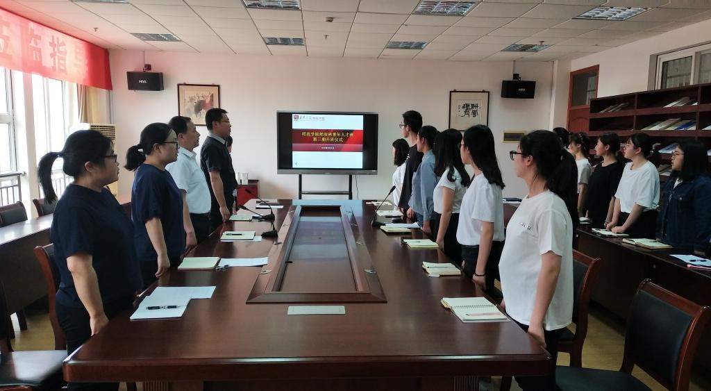 学工办主任、团总支书记唐曦宣读了本期青年人才班名单以及培训计划和学习要求,希望同学们通过青年人才班的学习锻炼,深化思想意识,提高学习工作能力。小学教育本科171班马诗诗同学代表学员发言,表示本期学员将不懈努力,实现自我超越、达到全面发展的目标。