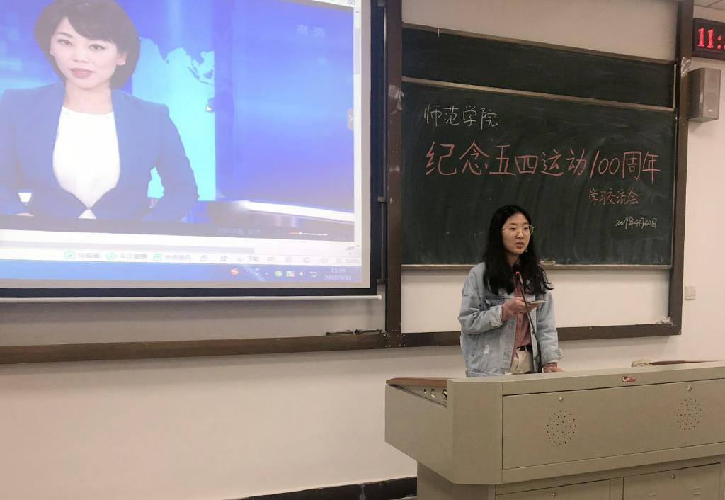 直播结束后,学前教育本科161班郁颖超同学和小学教育本科183班李维同学对五四精神重要性的认识、历史意义和时代价值等进行分享交流,并结合实际情况,提出作为一名师范生应该怎样为实现中华民族伟大复兴的中国梦而奋斗。