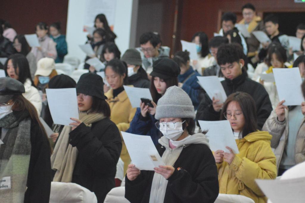 在主持人的引领下,讲堂以“省身”拉开序幕,伴随着音乐声,现场全体人员闭目进行自我反省,叩问心灵。在合唱了《团结就是力量》歌曲后,全体成员齐诵《厉行勤俭节约 崇尚低碳生活》倡议书,就道德展开学习和互动,全体同学收到了学院精心制作的印有校训“方正为人,勤慎治学”的笔盒。在行崇德礼过程中,全体人员以庄严肃穆的姿态向“德”字深鞠一躬。