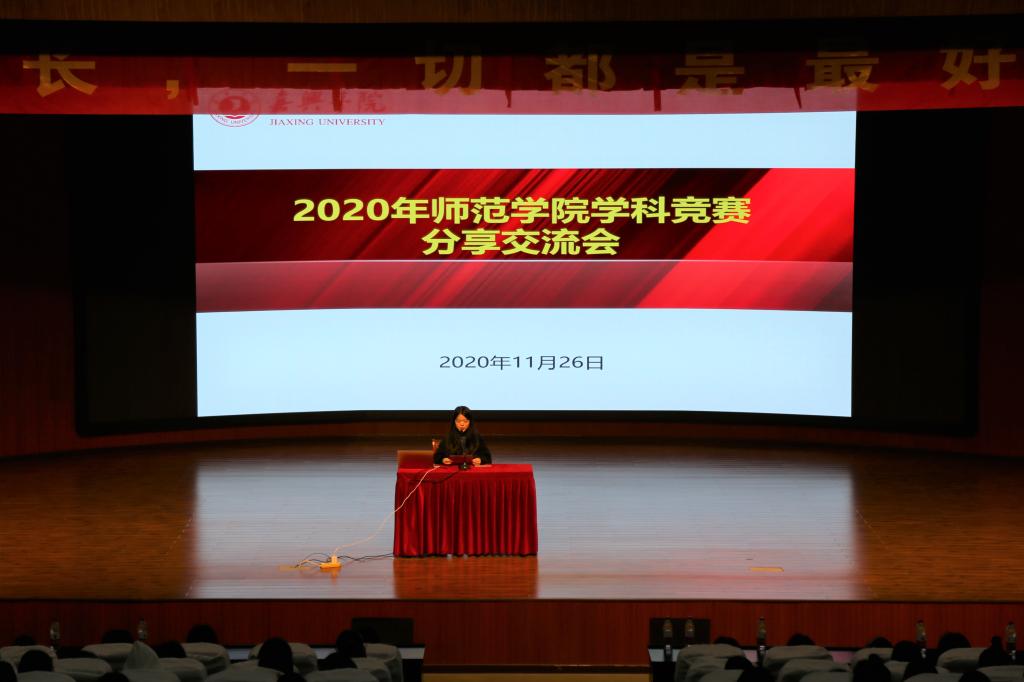 11月26日下午,嘉兴学院师范学院学科竞赛分享交流会在行政楼报告厅顺利开展。本次讲座由陈姿妙(第十二届“挑战杯”大学生创业计划竞赛)、葛艳丽(第六届“互联网+”大学生创新创业大赛)、宋佳漪(第十二届职业生涯规划大赛)、李蔡萌和田翊(“农信杯”第三届浙江省大学生乡村振兴创意大赛)五位同学作为分享人进行主讲,19级本科、20级专科以及20级本科部分同学参加。