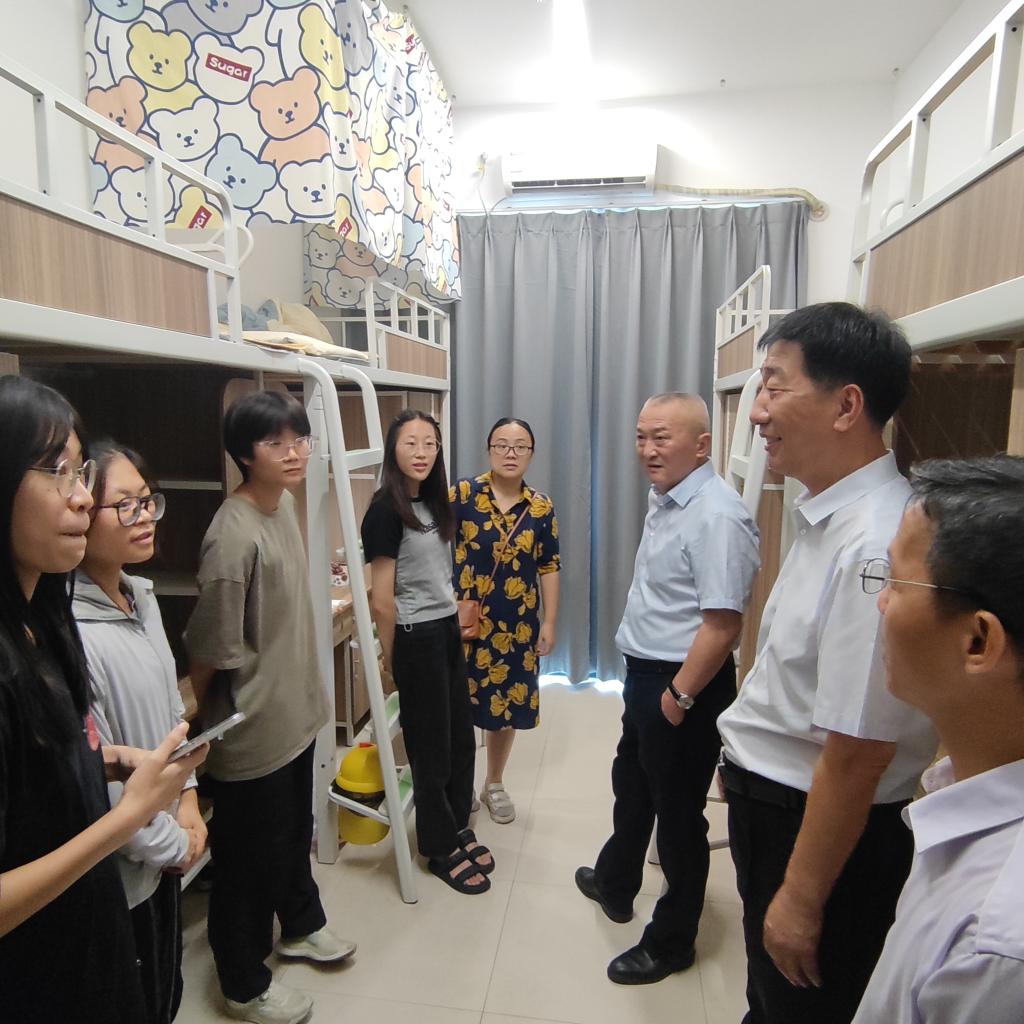 深入走访学生寝室与学生面对面开展谈心谈话是有效了解学生所思所想及征求学意见建议的最有效方式,也是深入开展习近平新时代中国特色社会主义思想主题教育的重要内容学院领导一行来到梁林校区美嘉苑看望了暑期留校的学生,详细了解学生暑期在校规划、留校生活情况、暑期暂时搬迁到梁林校区的感想及意见建议,同时提醒学生留校期间要与父母保持经常性联系,切实提高安全意识,遵守学校的规章制度