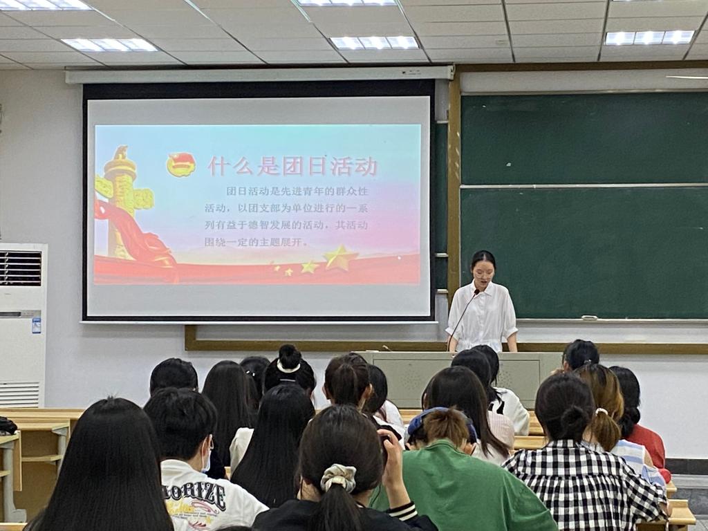 首先,吴凯强老师针对到会情况进行简单的讲话。接下来由团务工作部副部长曹费瑶主持会议,从“什么是团日活动?”“团日活动能带来什么?”引入,阐明了团日活动的概念、目的及意义,其次还介绍了“每月一题”团日项目、“活力支部”发展项目、“青年之声”支持项目三类项目,展示团日活动的多样性,倡导各支部积极参与。接下来,对团日活动上交材料进行规范讲解,其中包含新闻稿、照片等总结材料的规范性,为后续更好地完成团日活动奠定基础。此外,团日活动分享交流会还邀请了优秀团支部进行风采展示分享,6个分享的团支部各具特色的团日活动,为新生班团支部提供了宝贵的活动开展经验。