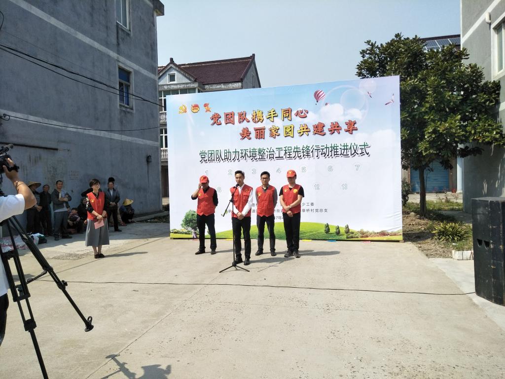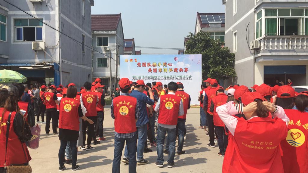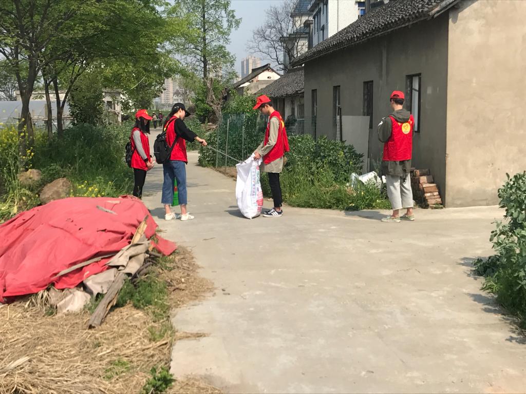 在初春的暖阳下,志愿者们参加了街道举办的党团队助力环境整治工程先锋行动推进仪式,在曹桥村、章桥村开展了环境巡查和垃圾清理志愿服务工作。在现场,他们还发放了环保宣传手册,向村民们普及剿灭劣V类水和环境保护知识。