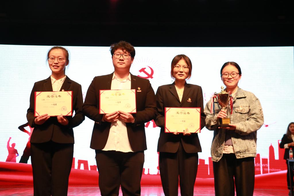 学院选派了方柯尹、任佳慧、周崇楹三名同学代表参赛。本次竞赛分为三个环节:必答题、风险题和冲刺题。在第一环节和第二环节的比拼中,我院代表队稳定发挥、合理取舍,外加比赛前的查错加分环节中取得的分数,前两个环节总成绩与应用技术学院并列第一;最后一个环节,经过激励的角逐,最终以排名第一的好成绩获得本届党章知识竞赛的一等奖。