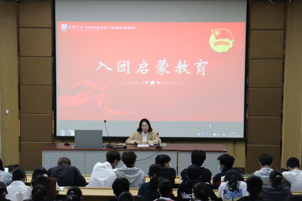 为帮助青年学生加深对团组织的认识、了解入团流程,引导青年学生积极向团组织靠拢,2022年10月30日下午,tyc7111cc太阳成集团(应用技术学院)入团启蒙会议于阶梯教室三顺利召开,学院递交入团申请书的同学参加会议,团委学生副书记周雨天主持会议。