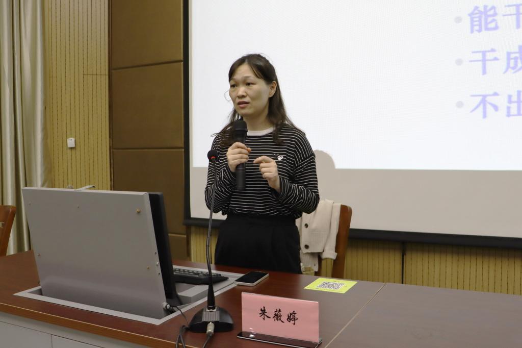 课上,朱薇婷提出:大学是化蛹为蝶的羽化过程,作为学生干部承担着更多的压力,面临更大的责任,应当做到学业和工作兼顾;加入学生会、团委是历练的过程,对学生全面发展具有重要意义。朱薇婷就如何做一名成功的学生干部给予了四点建议:想干事、能干事、干成事、不出事,指出作为学生干部需要有强烈的服务意识;在学生干部的成长路径方面,又提出要加强理论学习、党性修养、实践锻炼和综合素质,明确指出学生干部要有高度的思想自觉。朱薇婷强调作为学生干部还要做到三个提升:提升境界、提升眼界、提升路界。在掌握工作方法方面,朱薇婷又给予学生干部宝贵经验,即求实、求是、求新,勉励学生干部时刻秉持认真负责的工作态度和锐意进取的工作思想。此外,朱薇婷指出凡事预则立,不预则废,人生与事业是长期规划。