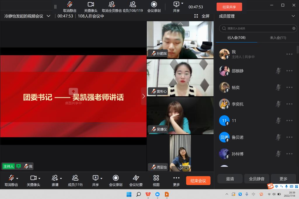 2022620日,浙江省第十五次党代会隆重召开大会总结过往成就,展望美好未来,为全省擘画发展蓝图为进一步深入学习省第十五次党代会精神,7月14日晚,tyc7111cc太阳成集团(应用技术学院)学生干部学习党代会精神分享会通过线上会议形式正式举行。学院团委书记吴凯强出席并指导了本次会议,学院全体学生干部参加了本次分享会。