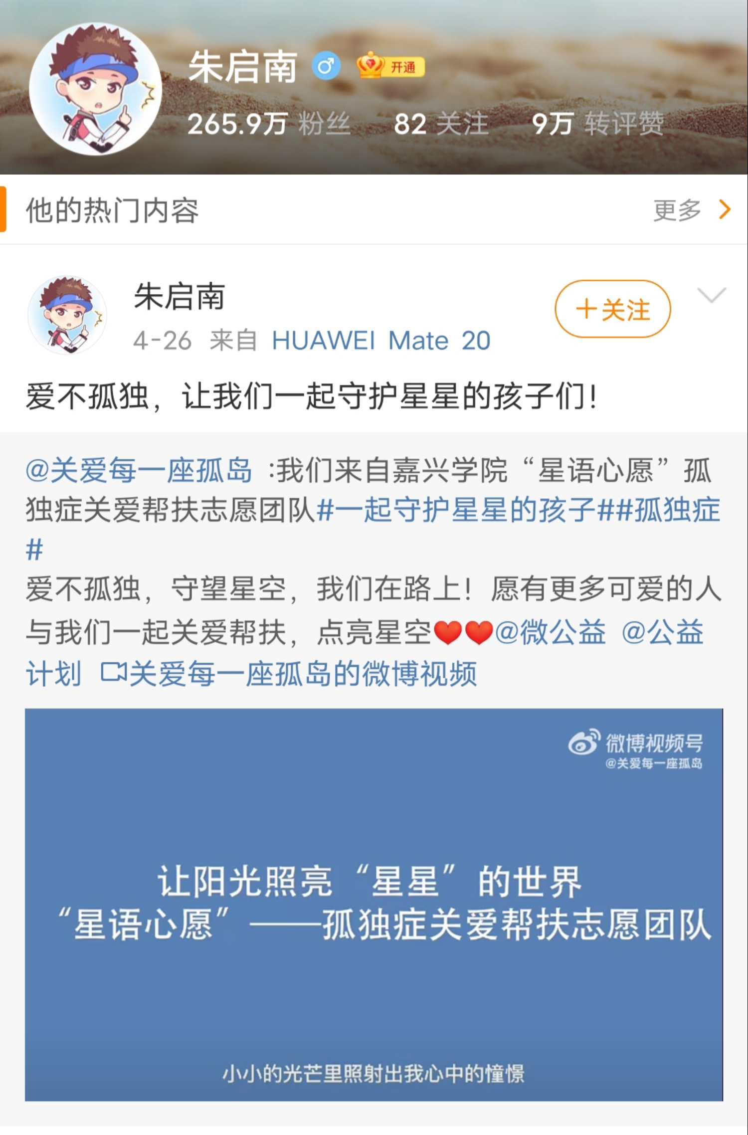 “爱不孤独,让我们一起守护星星的孩子们!”奥运冠军朱启南点赞、评论并转发学院“星语心愿”孤独症关爱帮扶志愿团队最新的微博视频!朱启南为体育届的射击明星,一直热心公益,用实际行动诠释他的大爱,此次支持孤独症的举动更是让那些处于困境的“星星”们感受到了温暖。