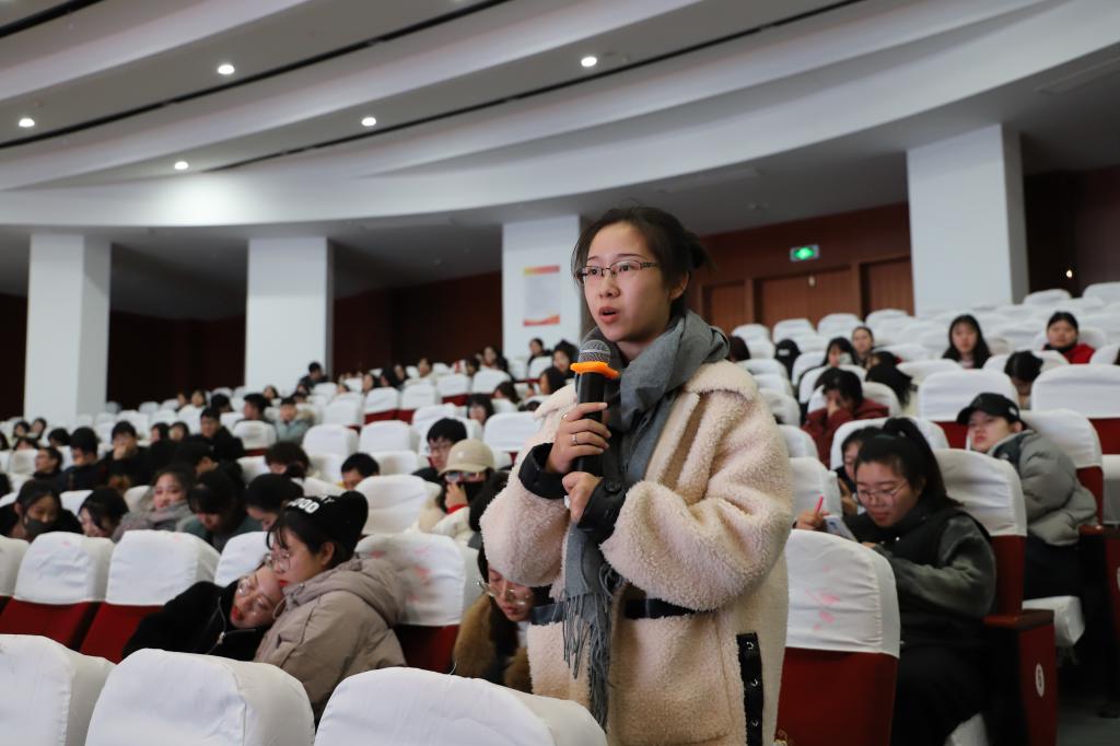 来自商务英语171班、2019年国家奖学金获得者熊鑫同学代表发言。现担任奥普家居有限公司渠道中心经理的优秀校友刘波为同学们分享了自己步入社会的求职面试、工作经历,给同学们提供了宝贵的建议,他告诉同学们首先有自信向前的心,积极调整自己的就业心态;其次要放下纠结,坚定信念,突破舒适圈,最后要坚持。在场同学们踊跃发言、积极提问,现场气氛热烈。