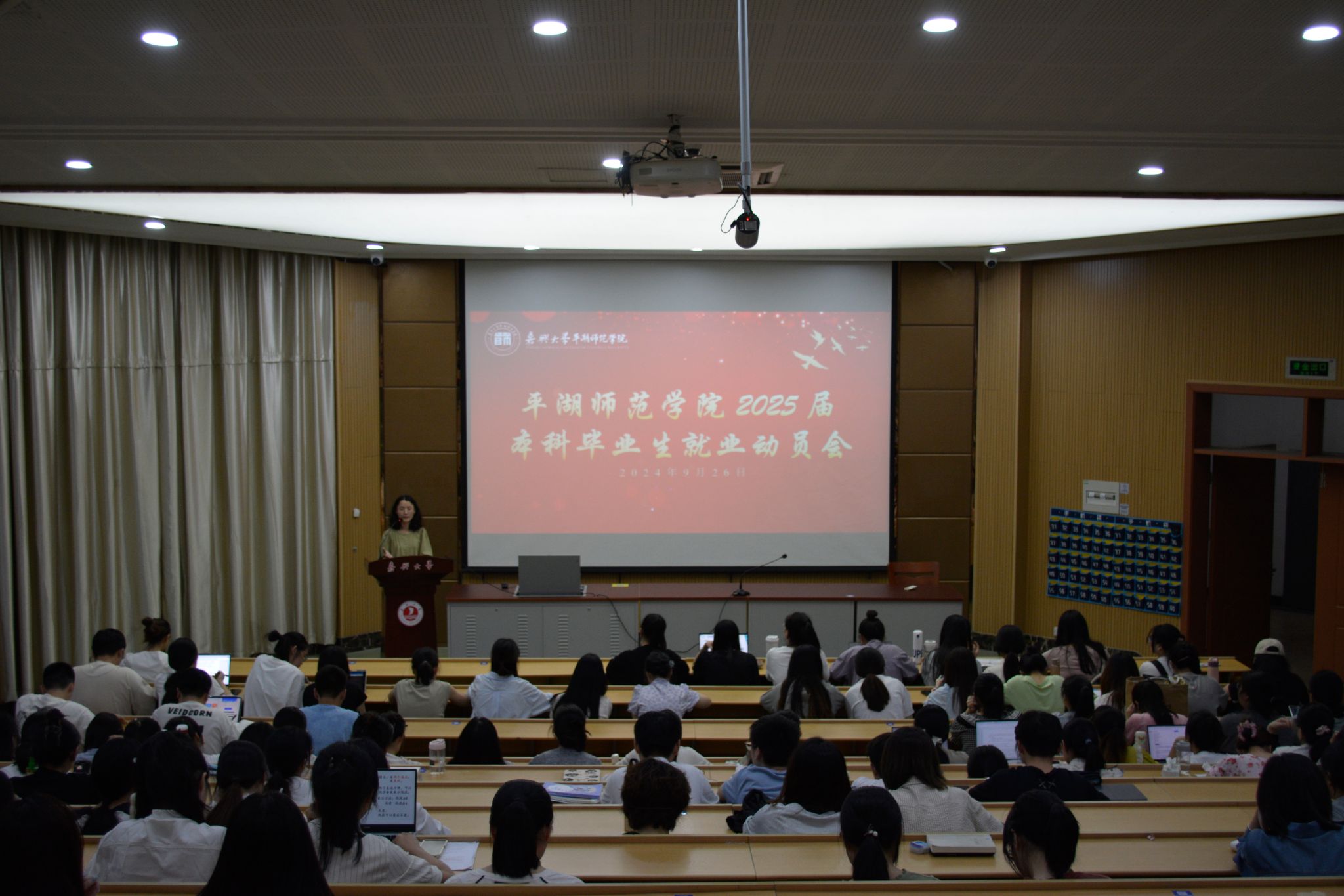 9月26日晚,学院2025届本科毕业生就业动员会在阶梯教室三顺利召开。学院党委副书记卓海丹、就业辅导员缪婷婷及全体2025届本科毕业生参加会议。