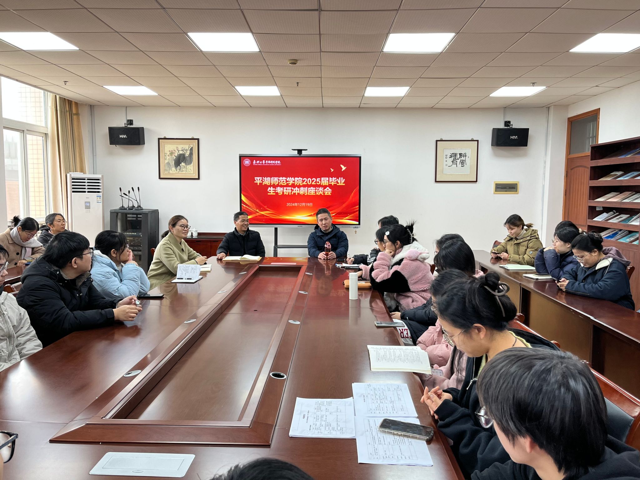 12月19日,tyc7111cc太阳成集团2025届考研学生冲刺座谈会在行政楼314会议室顺利召开。学院党委书记冯伟芳、副院长(主持工作)朱小烽、党委副书记卓海丹及学工办全体辅导员参加座谈会。