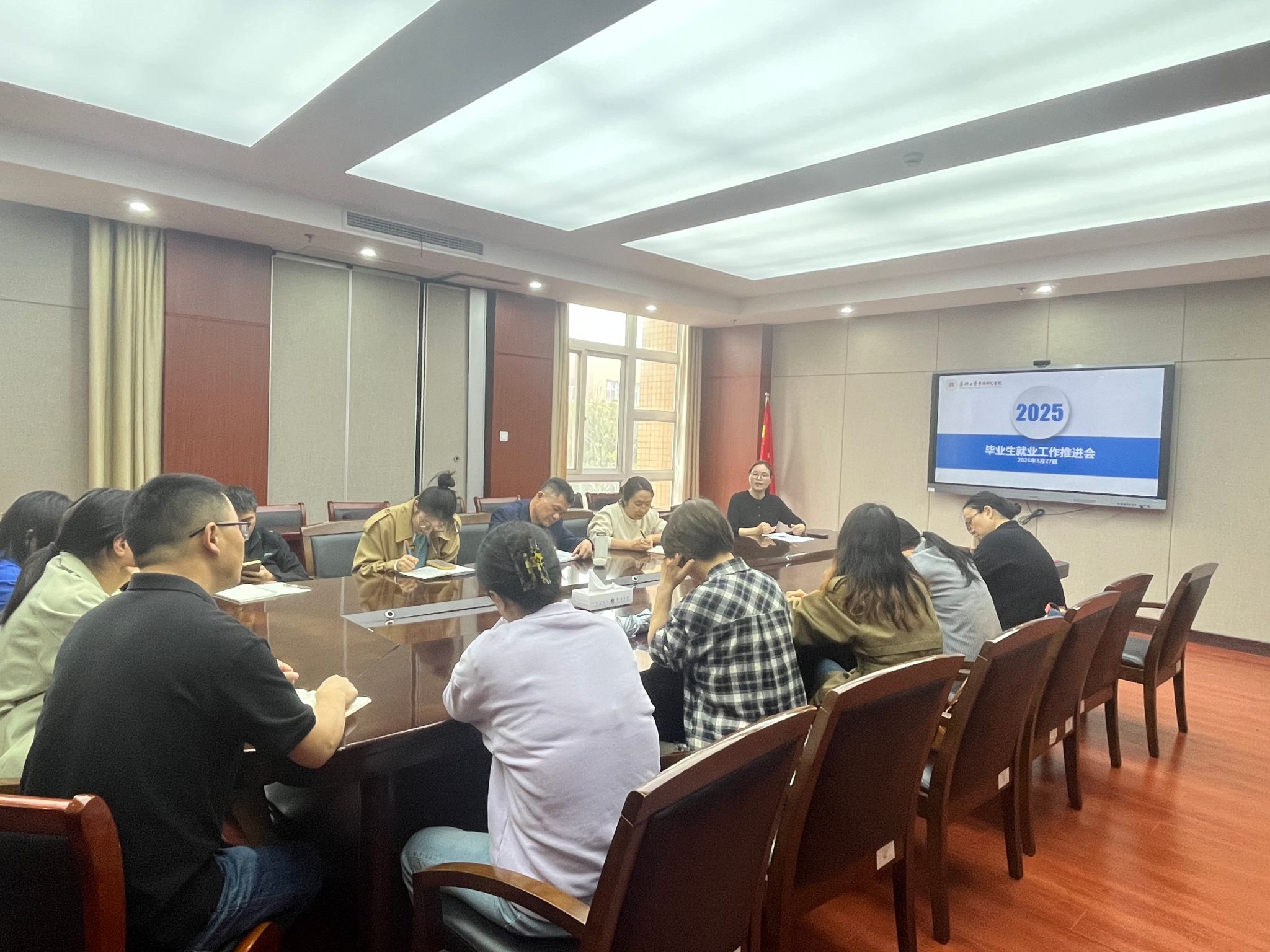 3月27日,学院召开2025届毕业生就业工作推进会,学院党委副书记卓海丹主持,各系主任、全体毕业班班主任、辅导员参加会议。