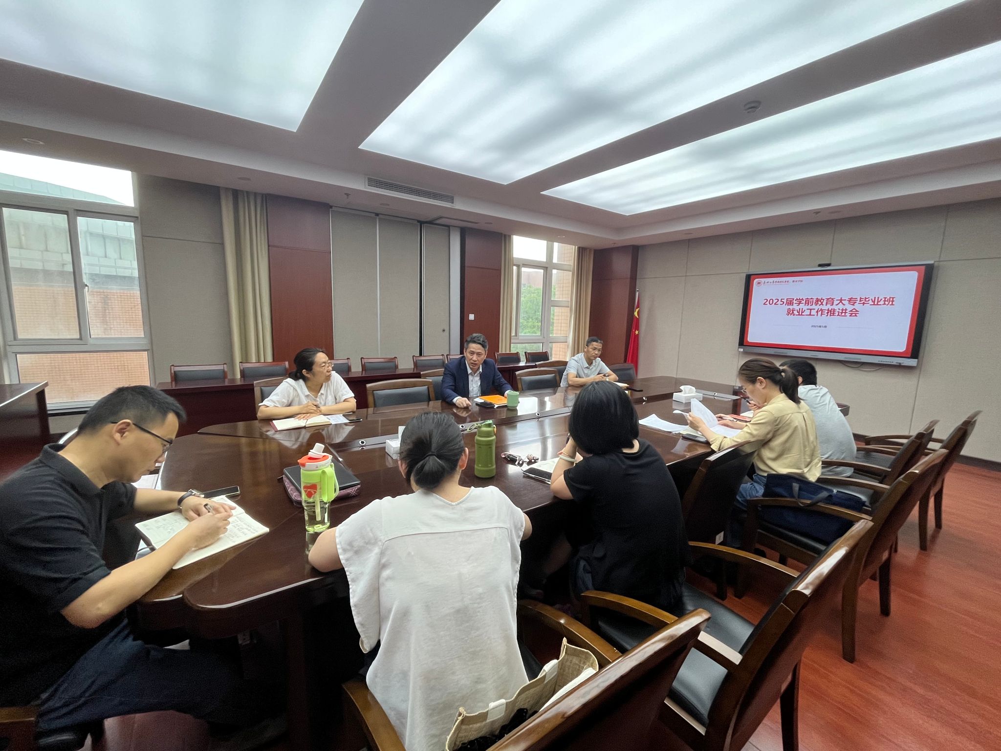 5月16日中午,学院召开2025届学前教育大专毕业班就业工作推进会,学院党委书记冯伟芳、副院长(主持工作)朱小烽、党委副书记卓海丹参会,会议由朱小烽主持,全体毕业班班主任参加会议。