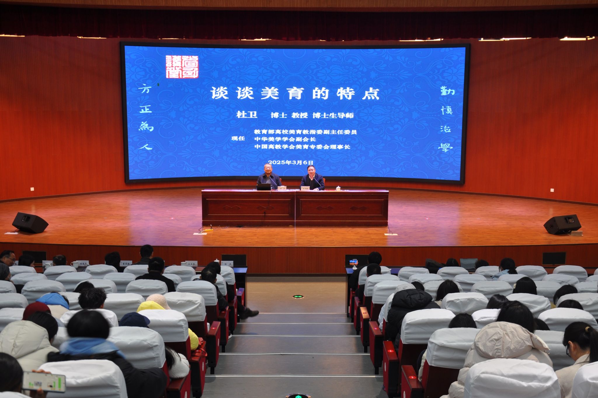 3月6日下午,教育部高校美育教指委副主任委员、中华美学学会副会长、中国高教学会美育专委会理事长杜卫教授应邀为学院师生作题为《谈谈美育的特点》讲座。校党委委员、副校长王立玮主持,中共平湖市委常委、统战部部长沈志林,平湖市政协副主席、知联会会长董碧颖,平湖市相关部门领导及学院400余位师生到场聆听。