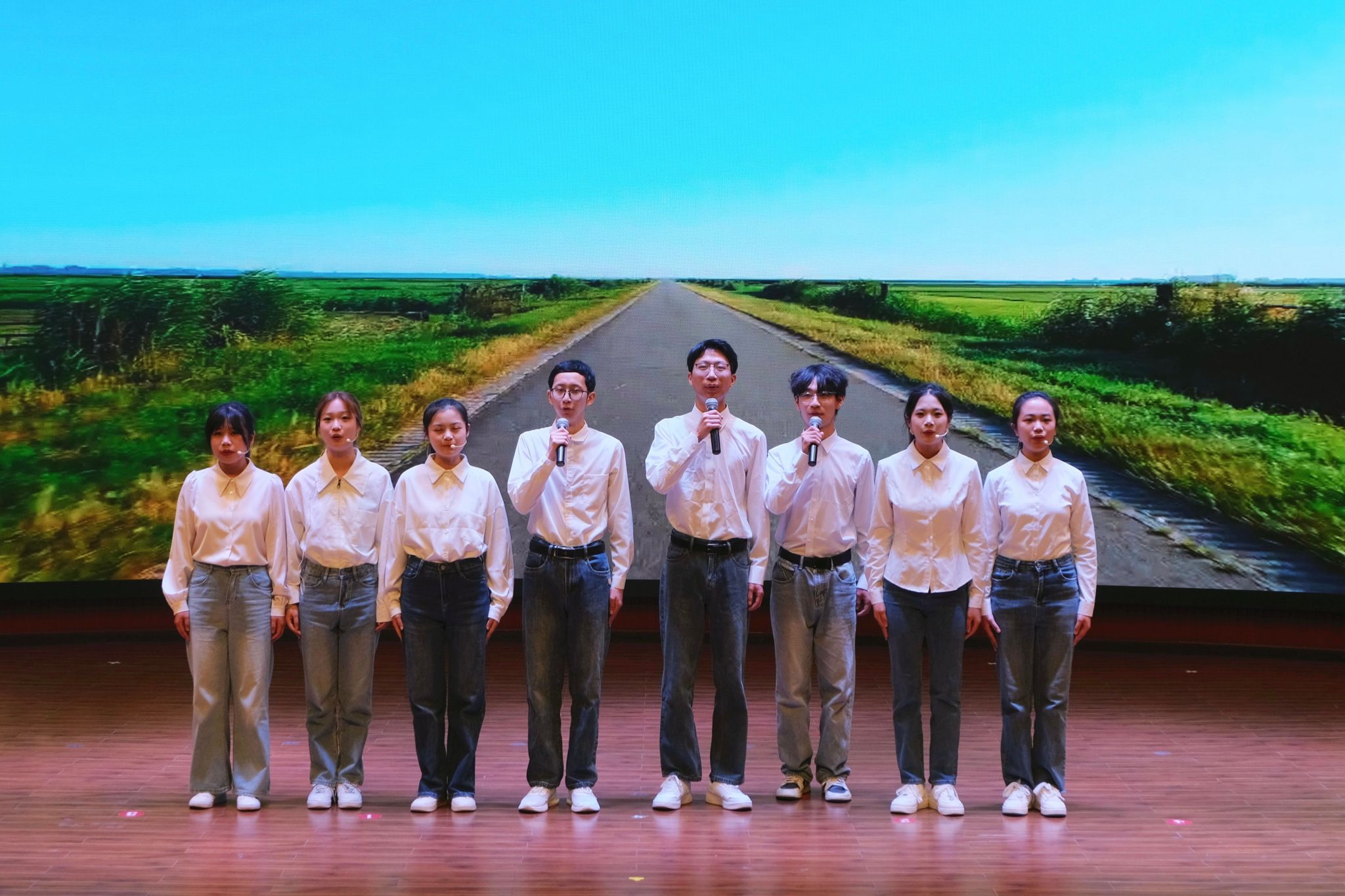最后,伴随着气势磅礴的音乐缓缓响起,小学教育专业的同学们以饱满的精神状态登上舞台,在聚光灯的映照下齐声朗诵《我走在早晨的大路上》。字字句句彰显着开拓进取的豪情壮志,铺陈出对学校未来发展的坚定信心,为本次师范生技能展演画上了圆满而激昂的句号,现场掌声雷动,久久不息。