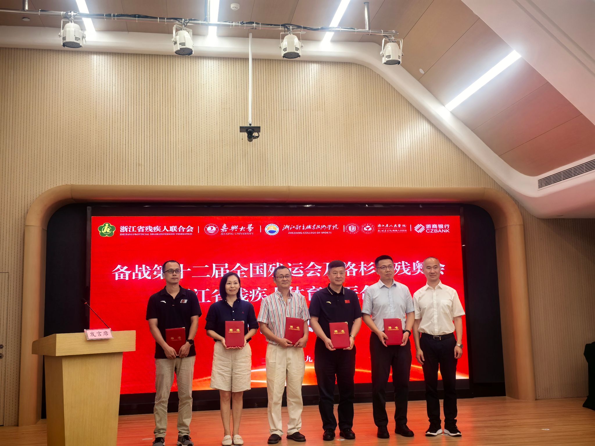 9月16日下午,学校与浙江省残疾人联合会残疾人体育科医合作协议签约仪式在省残疾人之家举行,浙江省残疾人联合会理事长、书记吕林,浙江体育职业技术学院院长孟关良,副校长於建明出席仪式。